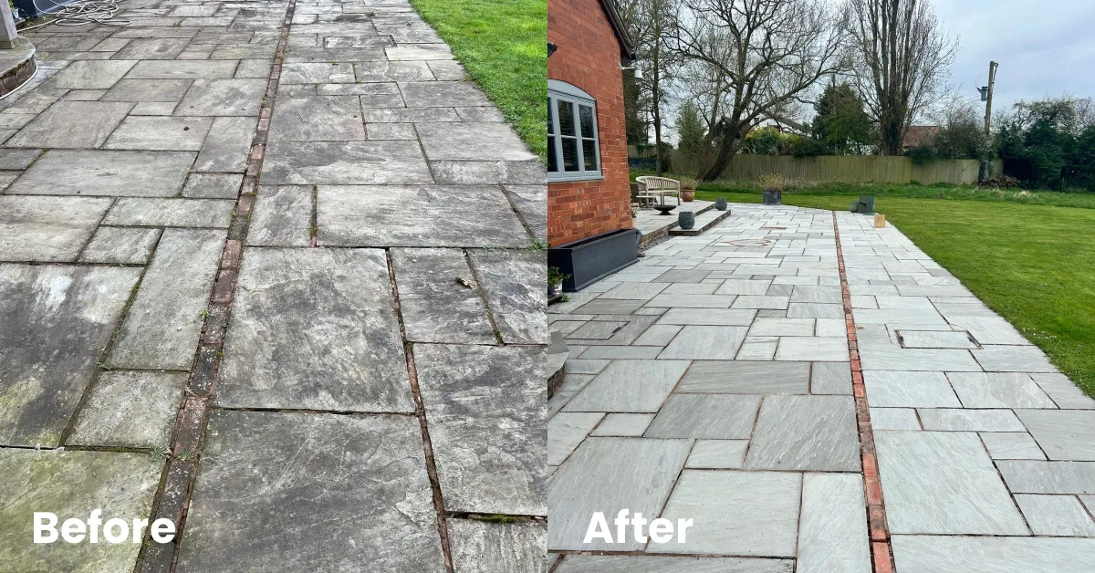 One side untouched. Other side power washed. Same surface. Just water and pressure.